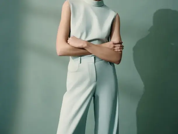 Izeta drew inspiration from the architecture of southern countries when designing the color palette of the collection. The key shades chosen were sandy and terracotta, which can be seen throughout the collection. For the leather items, cozy shades of dark chocolate, banana, buttercream, and warm milk were selected. The collection also includes suits in classic colors made from fine wool and wild silk, as well as sets in a refreshing mint color.
